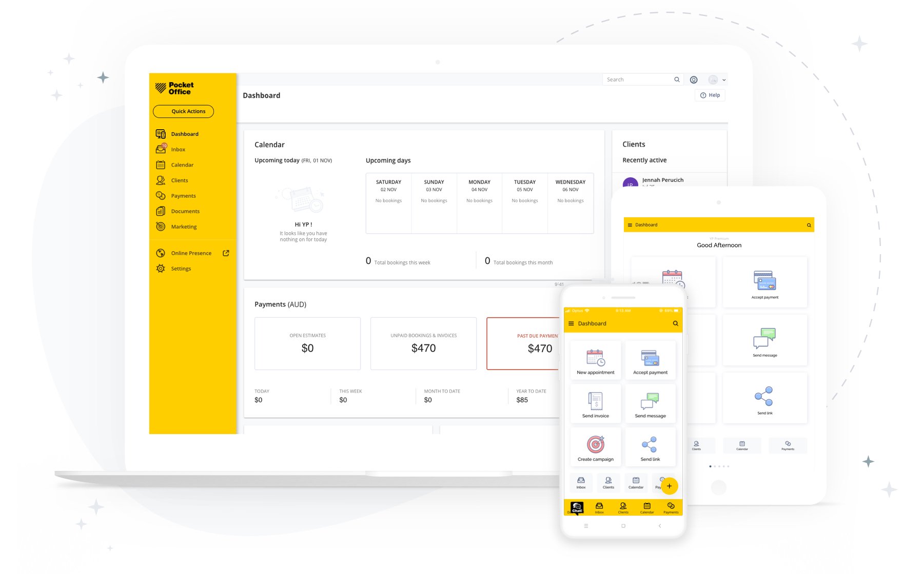 Pocket Office is a Booking Guru, Invoice Wizard, Marketing Superstar & Scheduling Manager all in one.